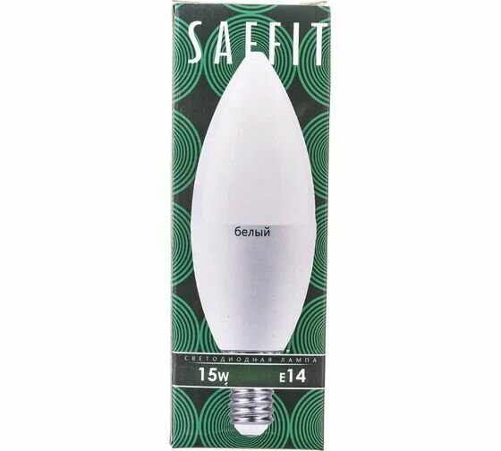 Лампа светодиодная SAFFIT SBC3715 арт. 55204, C37 (свеча) 15W E14 4000К (белый) 230V