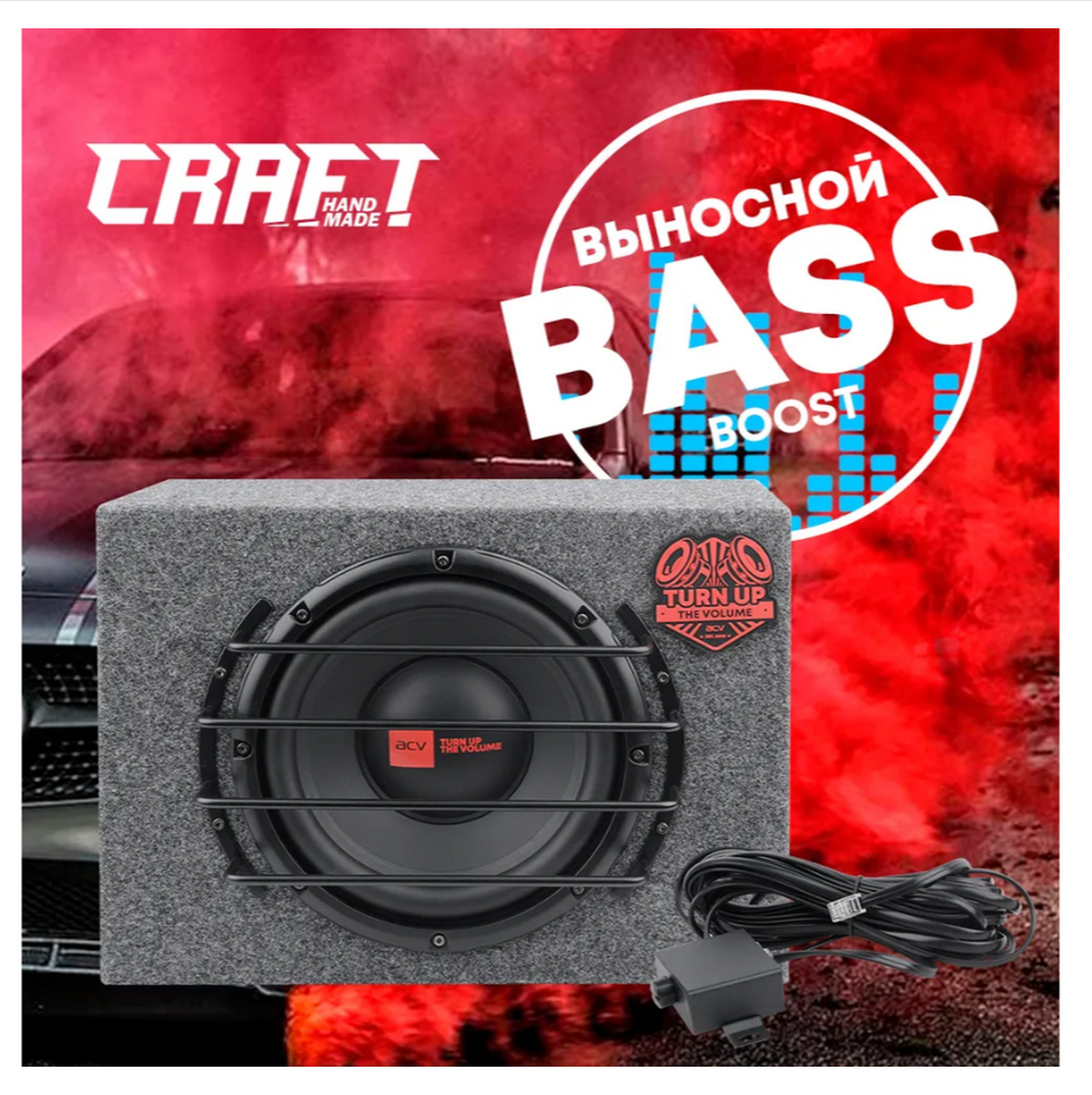 acv craft f10a активный/корпусной/1200вт/25см/spl-110дб/серый автосабвуфер