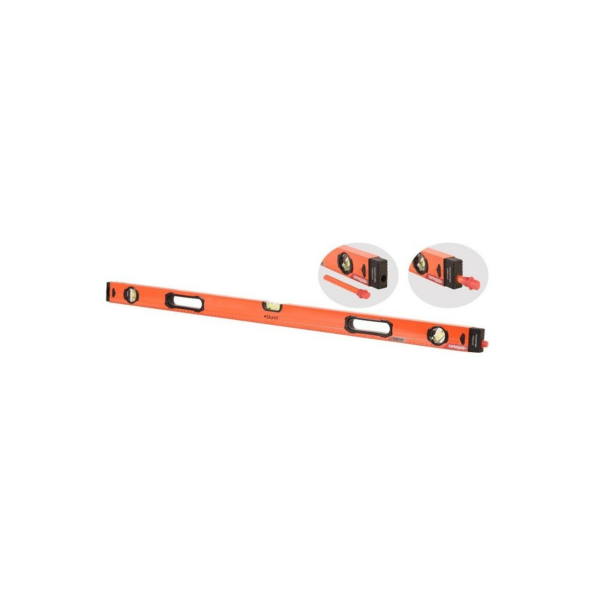 Уровень с карандашом 800 мм, магнитный,3 глазка,1мм/м, серия Кулибин, Sturm!