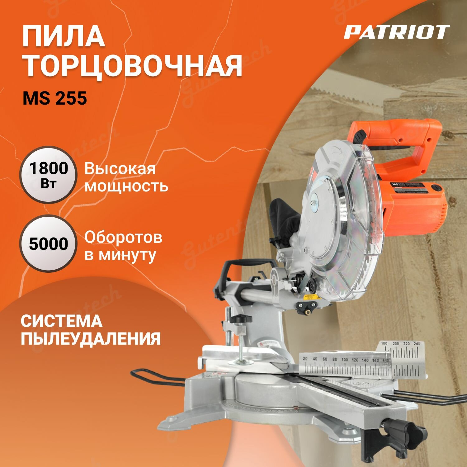 Торцовочная пила Patriot MS 255, 1800 Вт, 250 мм