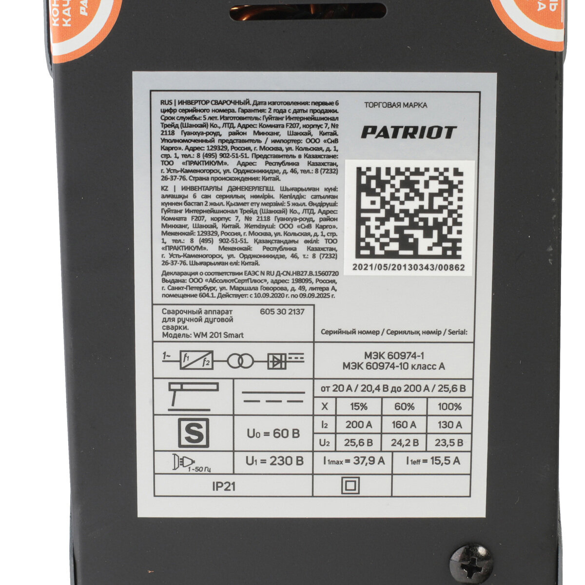 Купить Patriot Сварочное оборудование, Инверторы WM 201 Smart MMA Аппарат сварочный 605302137