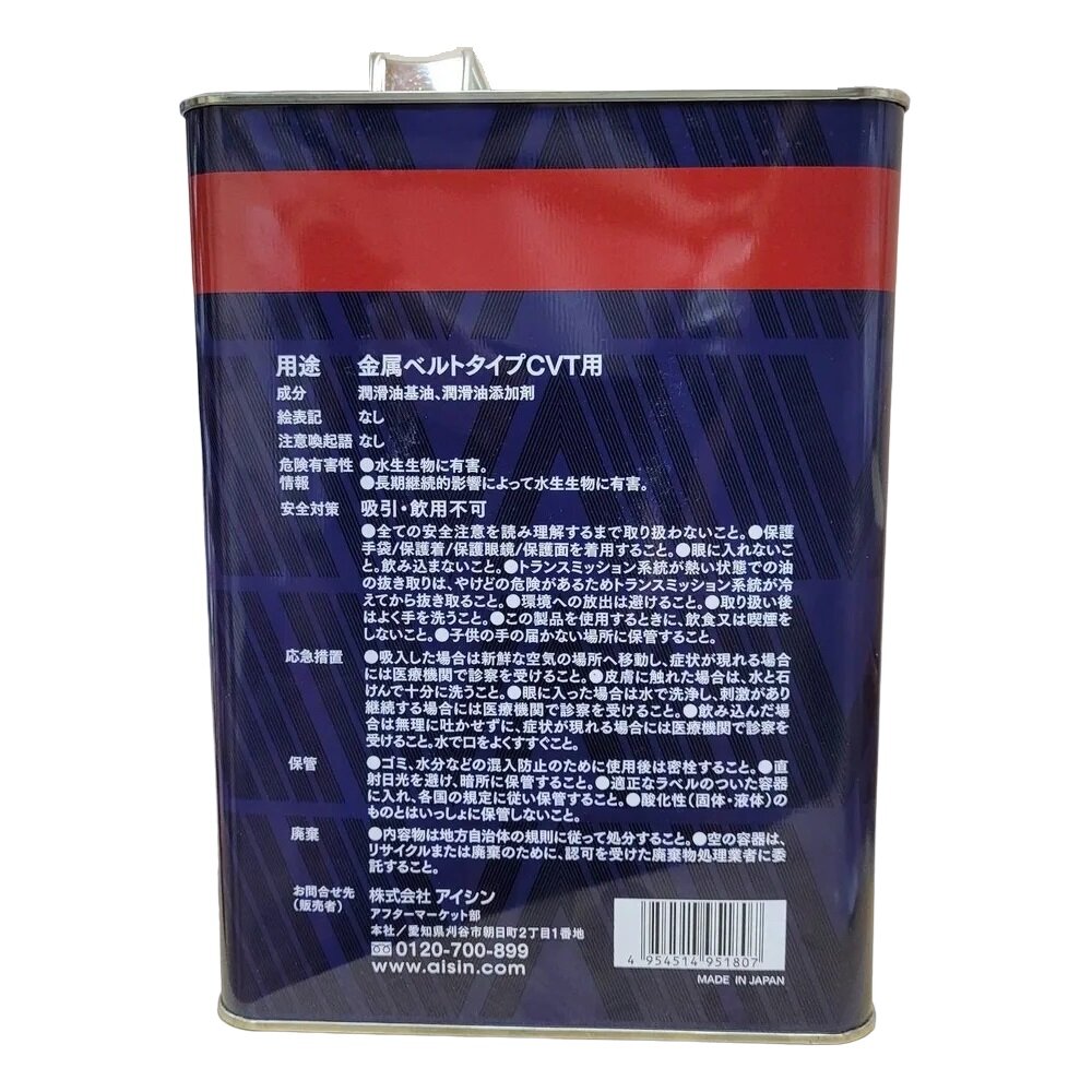 Масло трансмиссионное AISIN CVT Fluid Excellent CFEX, 4 л, 1 шт.
