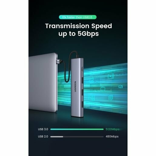USB-концентратор UGreen CM416, 20984, разъемов: 3, черный