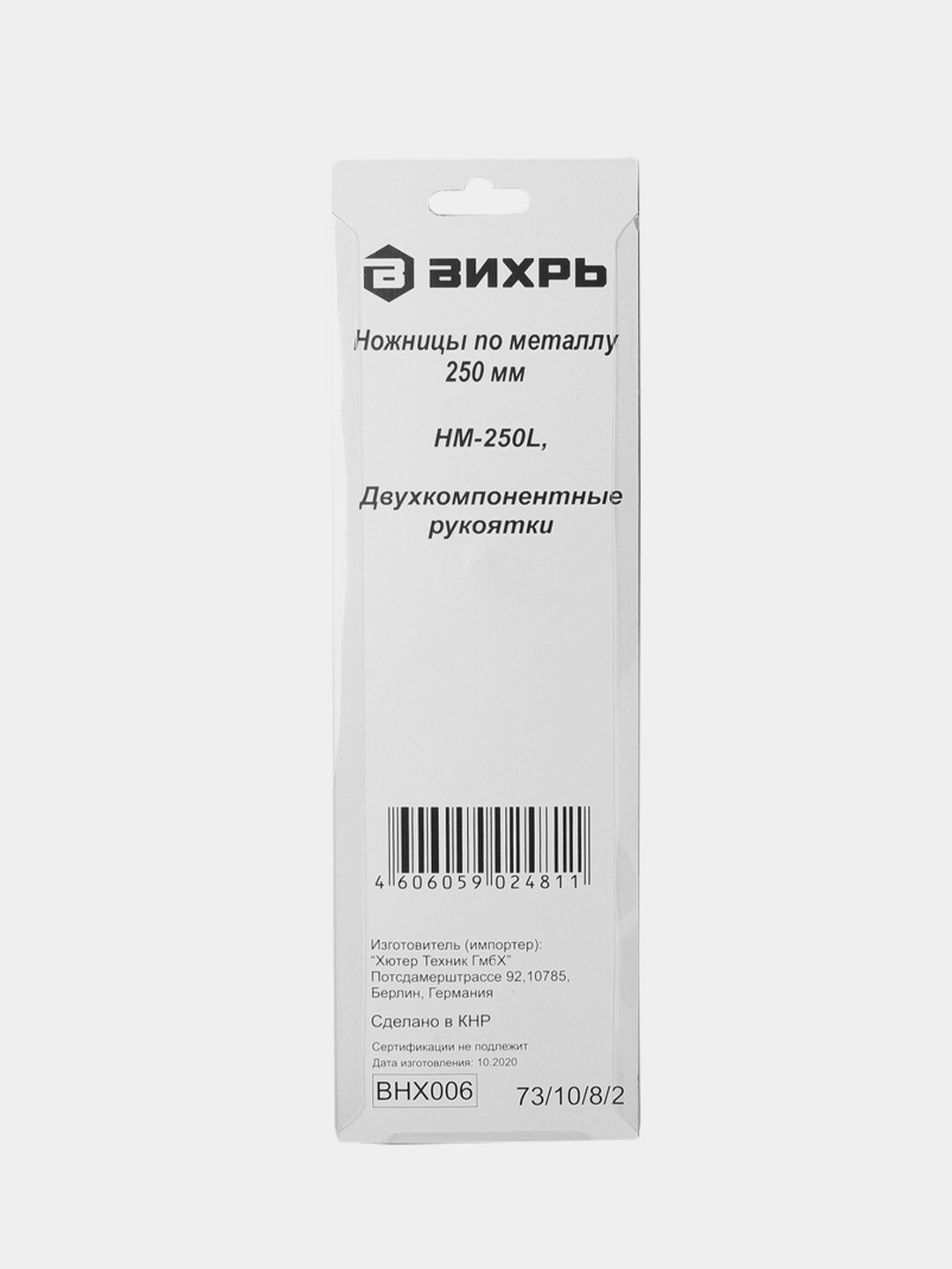 Купить Ножницы по металлу 250мм НМ-250L двухкомпонентные рукоятки Вихрь 73/10/8/2 (4шт.в упак.)