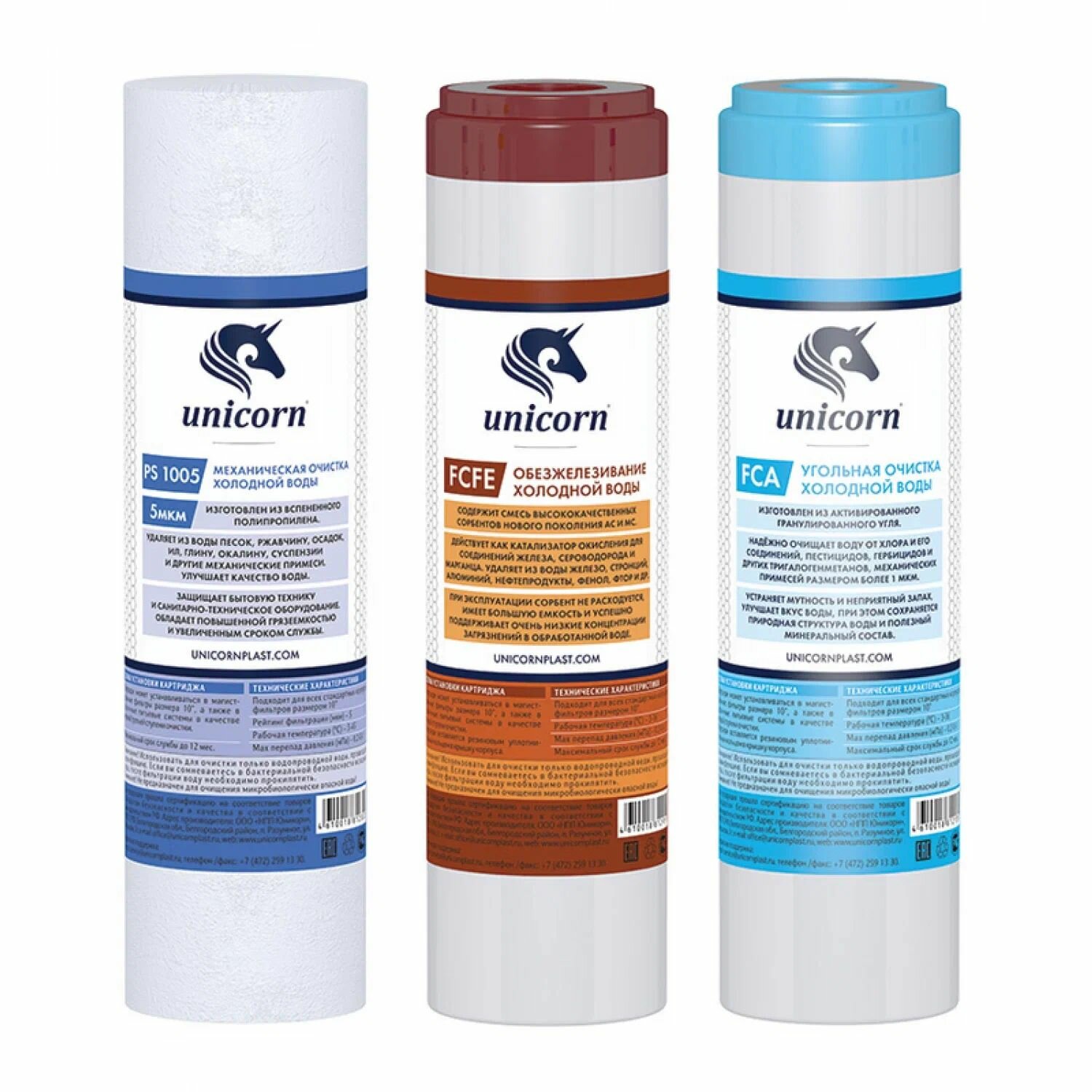 Unicorn Комплект картриджей для питьевых систем PS-10, FCFE-10, FCA-10 UNICORN (K-FE), 1 уп, 3 шт.