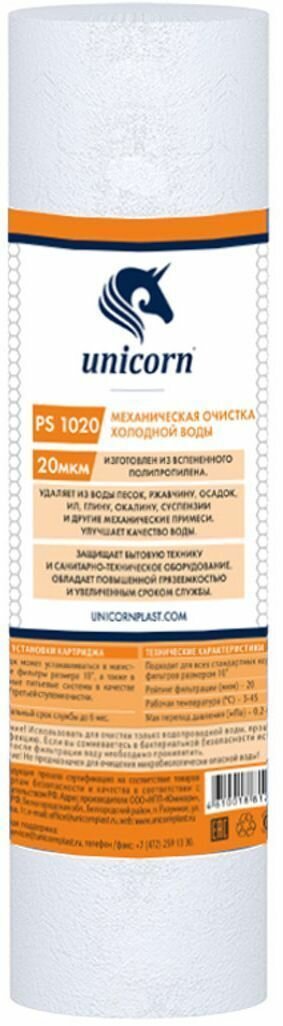 Картридж для механической очистки воды Unicorn PS-1020 S UN 10", 20 МКМ ИС.230048