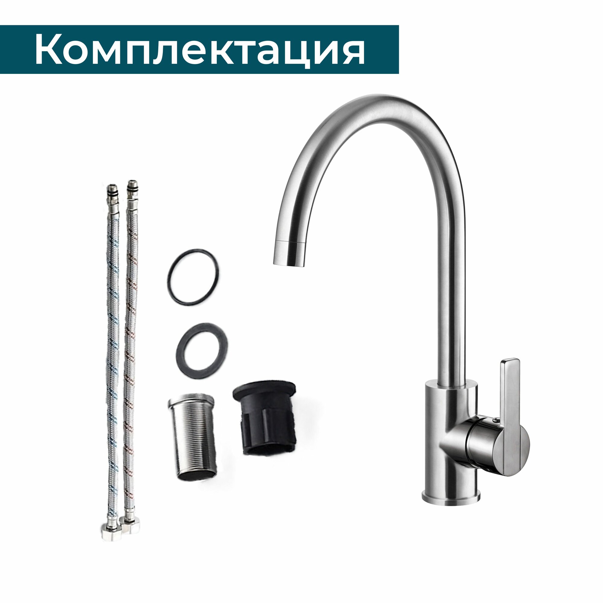Смеситель для кухни с высоким поворотным изливом ALVEUS GENESIS TONIA BRS матовый, нержавеющая сталь