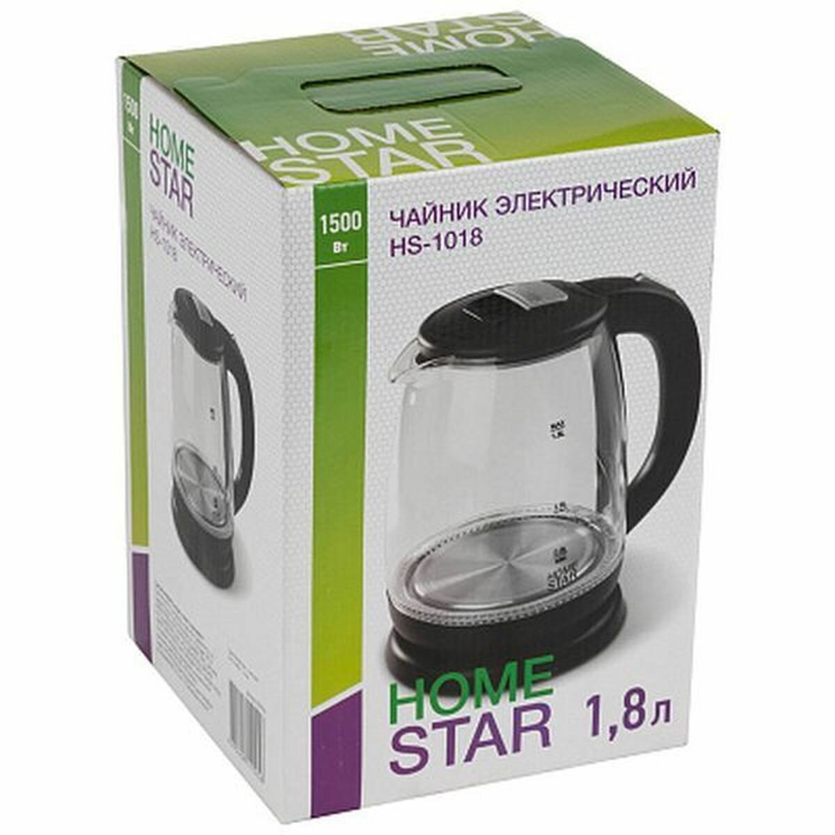 HomeStar Чайник электрический Homestar HS-1018, стекло, 1.8 л, 1500 Вт, чёрный