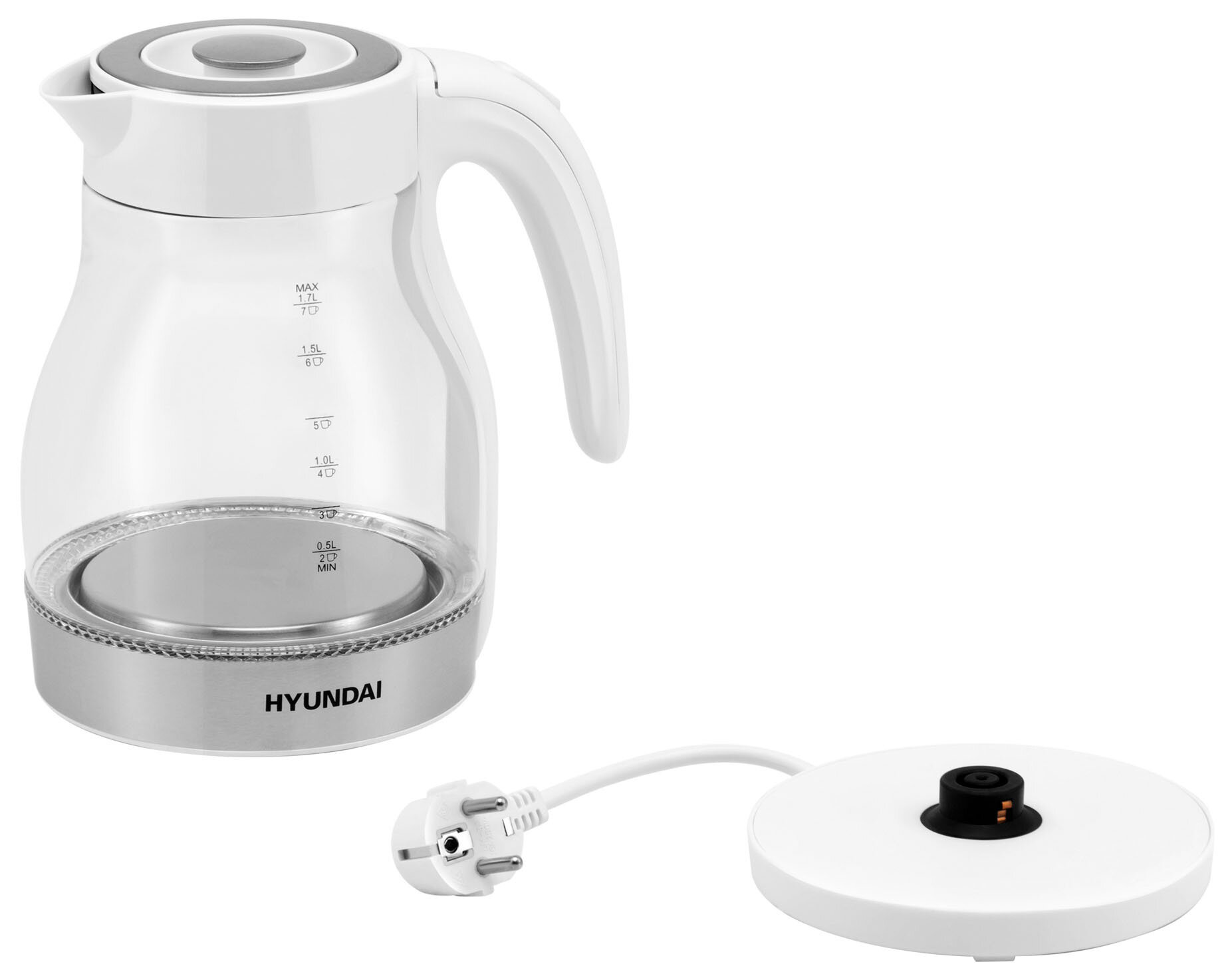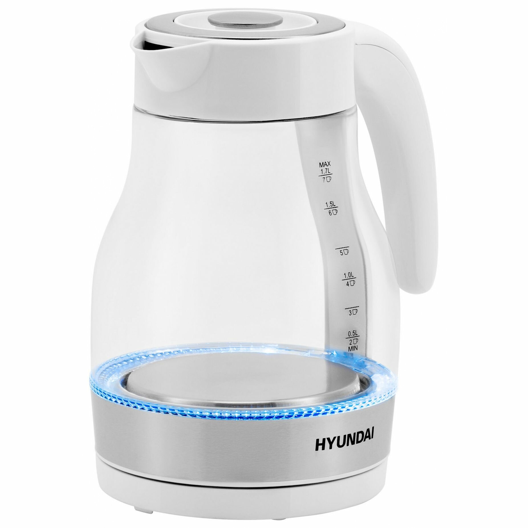 Купить Чайник электрический Hyundai HYK-G3802 белый/серебристый, стекло