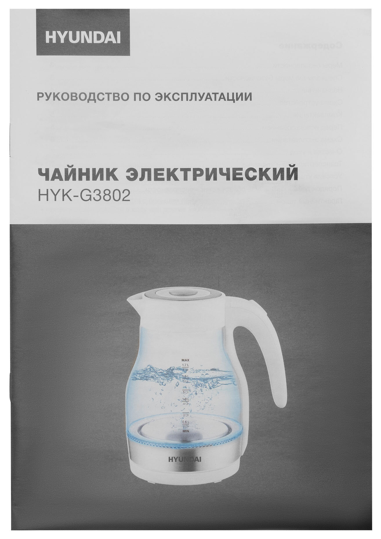 Чайник электрический Hyundai HYK-G3802 белый/серебристый, стекло интересное: