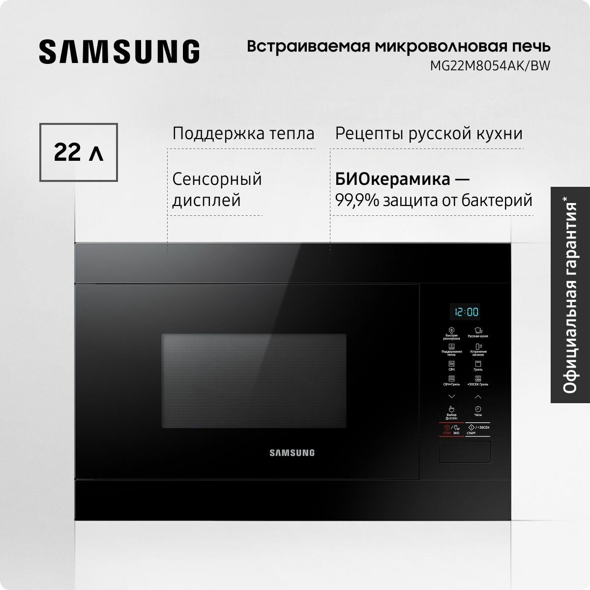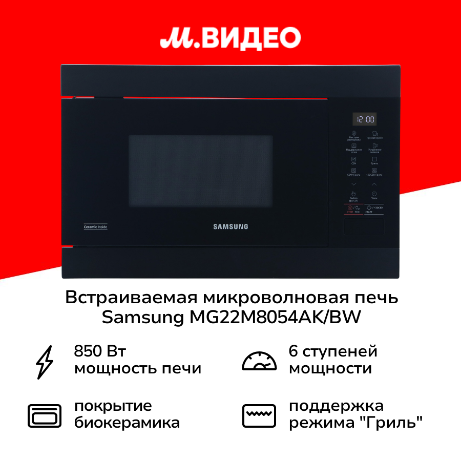 Микроволновая печь встраиваемая Samsung MG22M8054AK, черный..