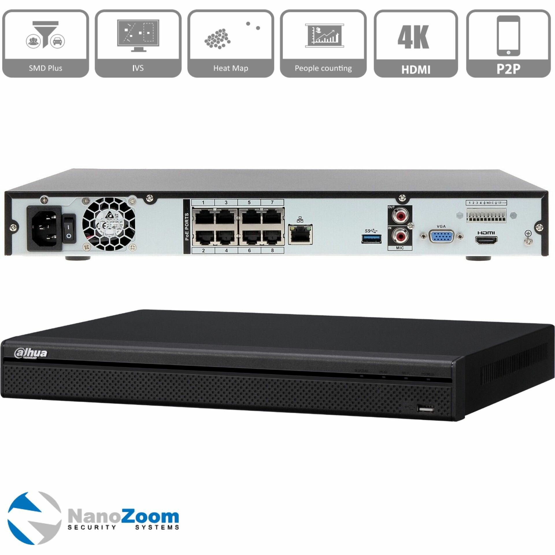Dahua 8-канальный IP-видеорегистратор с PoE DHI-NVR4208-8P-4KS2/L