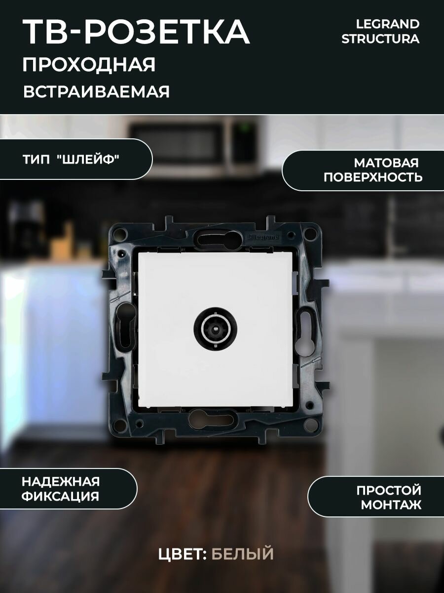 Купить ТВ-розетка проходная встраиваемая Legrand Structura шлейф, цвет белый