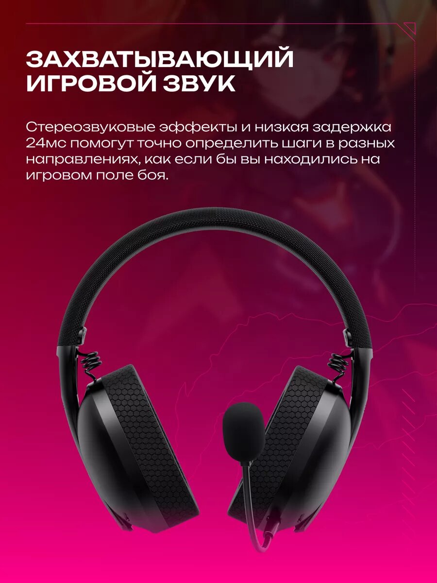 Наушники игровые VOROTEX V2002D проводные. Геймерская гарнитура с микрофоном для ПК, компьютера, ноутбука, jack 3,5 мм, чёрный