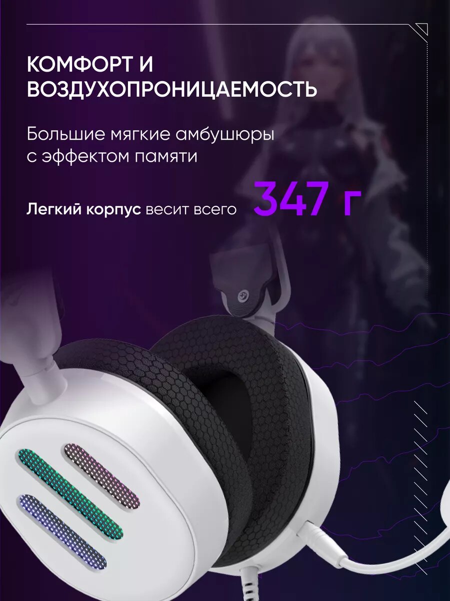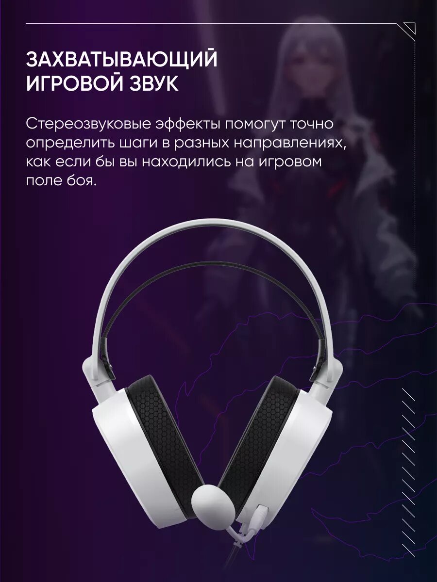 Наушники игровые VOROTEX V2002D-W проводные. Геймерская гарнитура с микрофоном для ПК, компьютера, ноутбука, jack 3,5 мм, белый