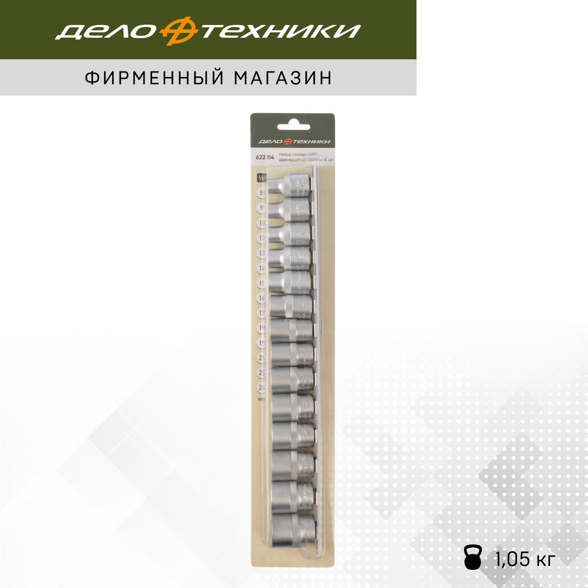 Набор головок двенадцатигранных 1/2", 14 штук Дело Техники 622114