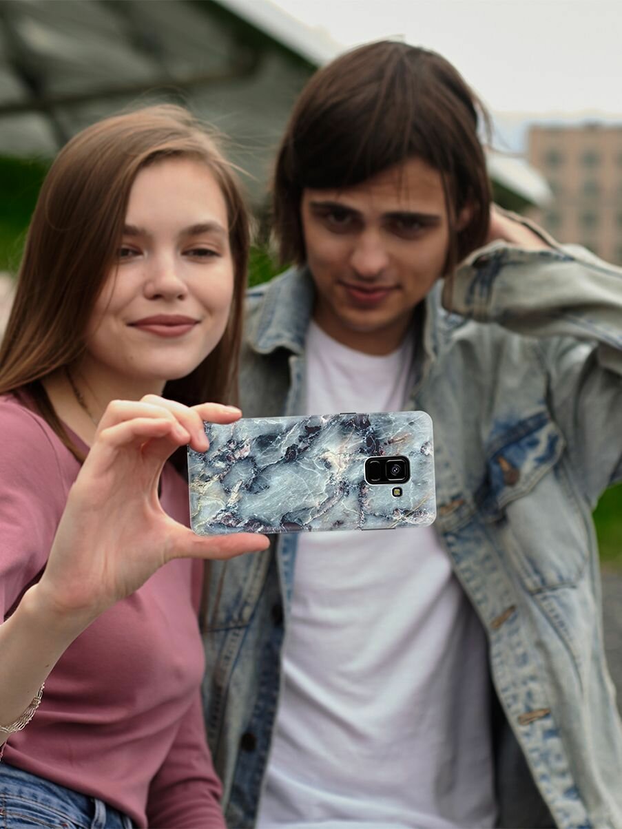 Накладка Transparent для Samsung Galaxy A8 (2018) с принтом "Бледно-синий мрамор" интересное: