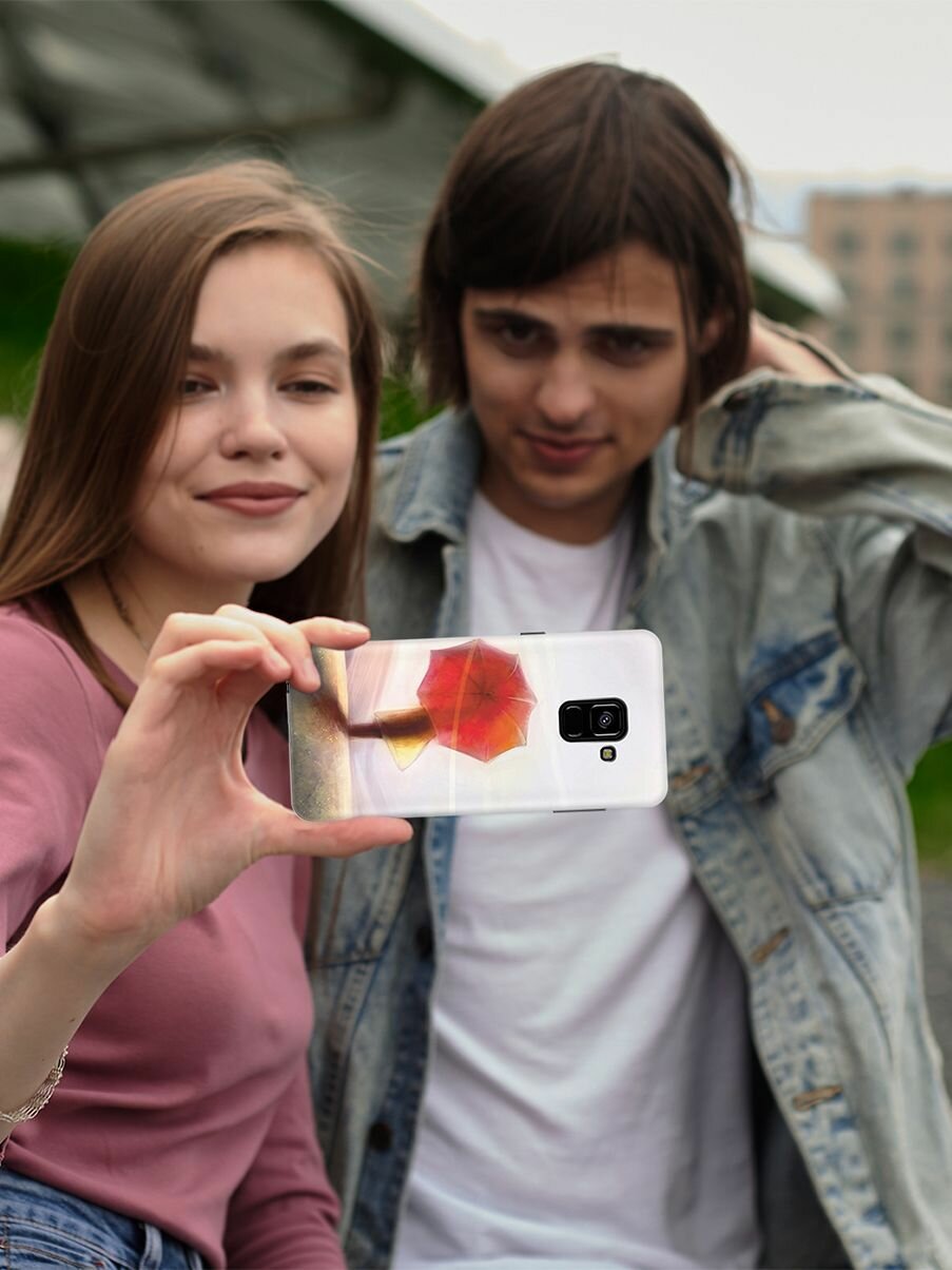 Накладка Transparent для Samsung Galaxy A8 (2018) с принтом "Красный зонтик" интересное: