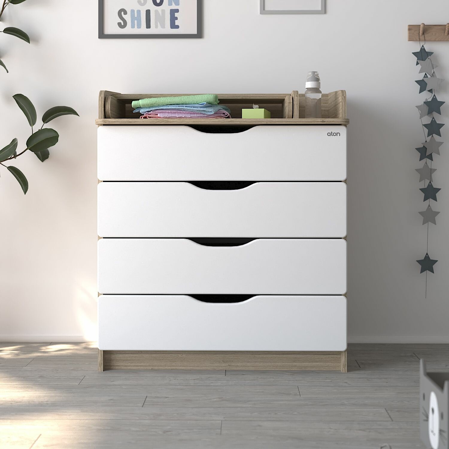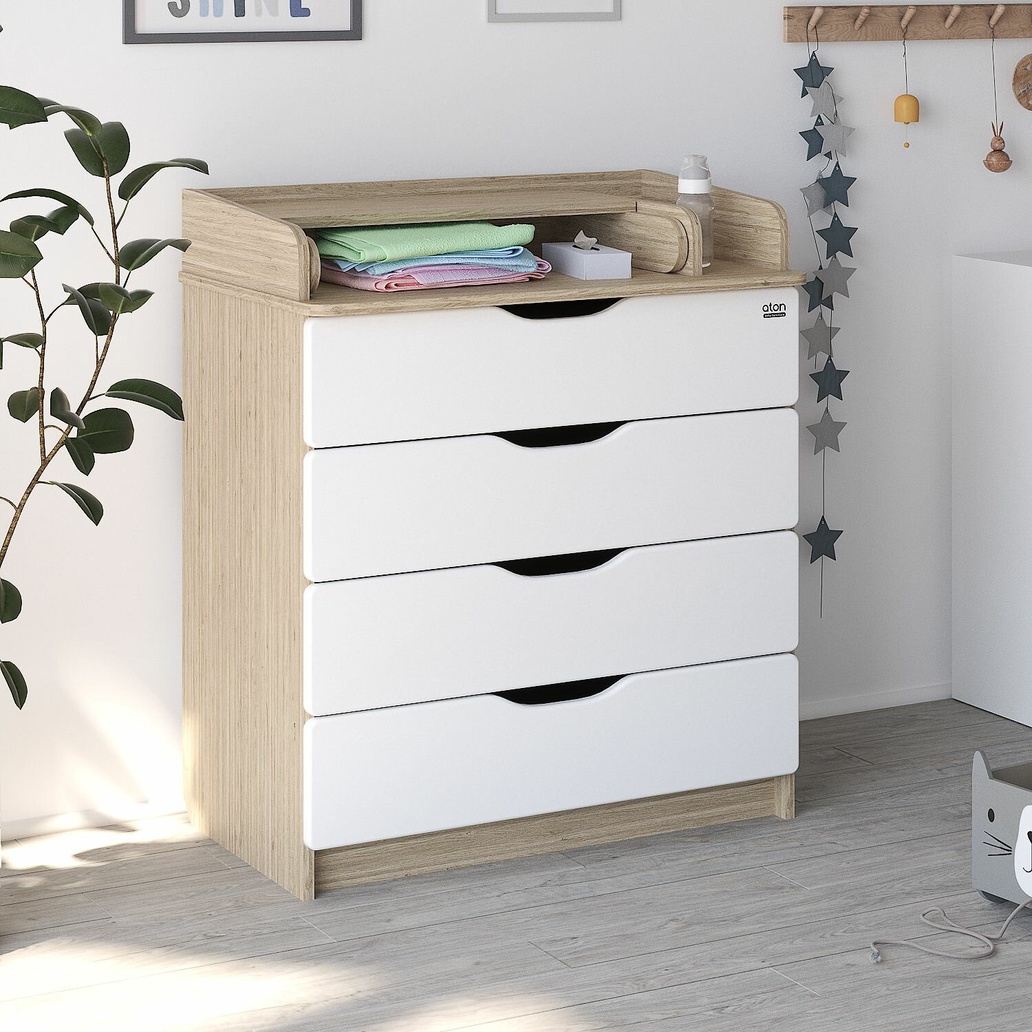 Атон Комод детский с пеленальным столиком Сириус-2 Wood 804 ПВХ, белый премиум, 4 ящика