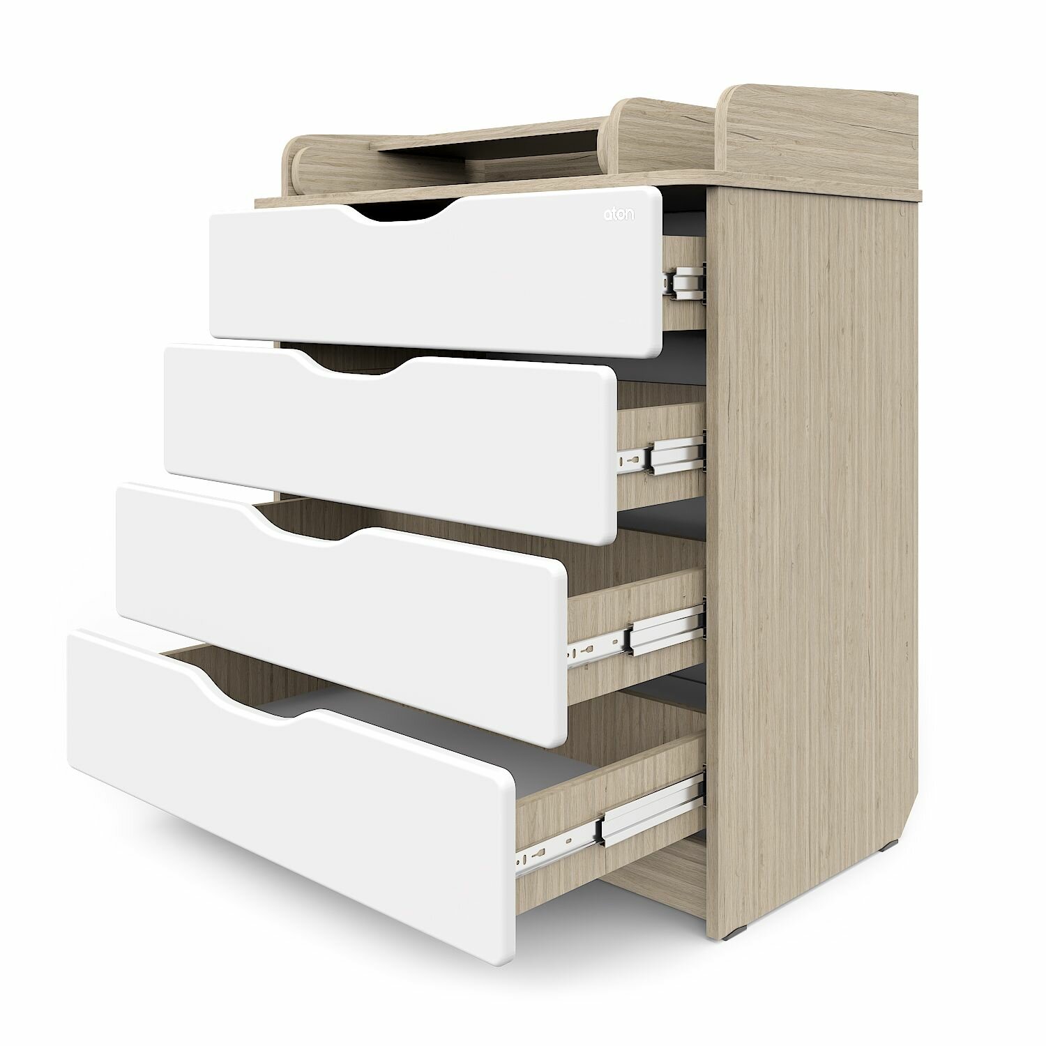 Комод с пеленальной поверхностью, 94x81x48см, 4 выдвижных ящика, Атон Мебель белый