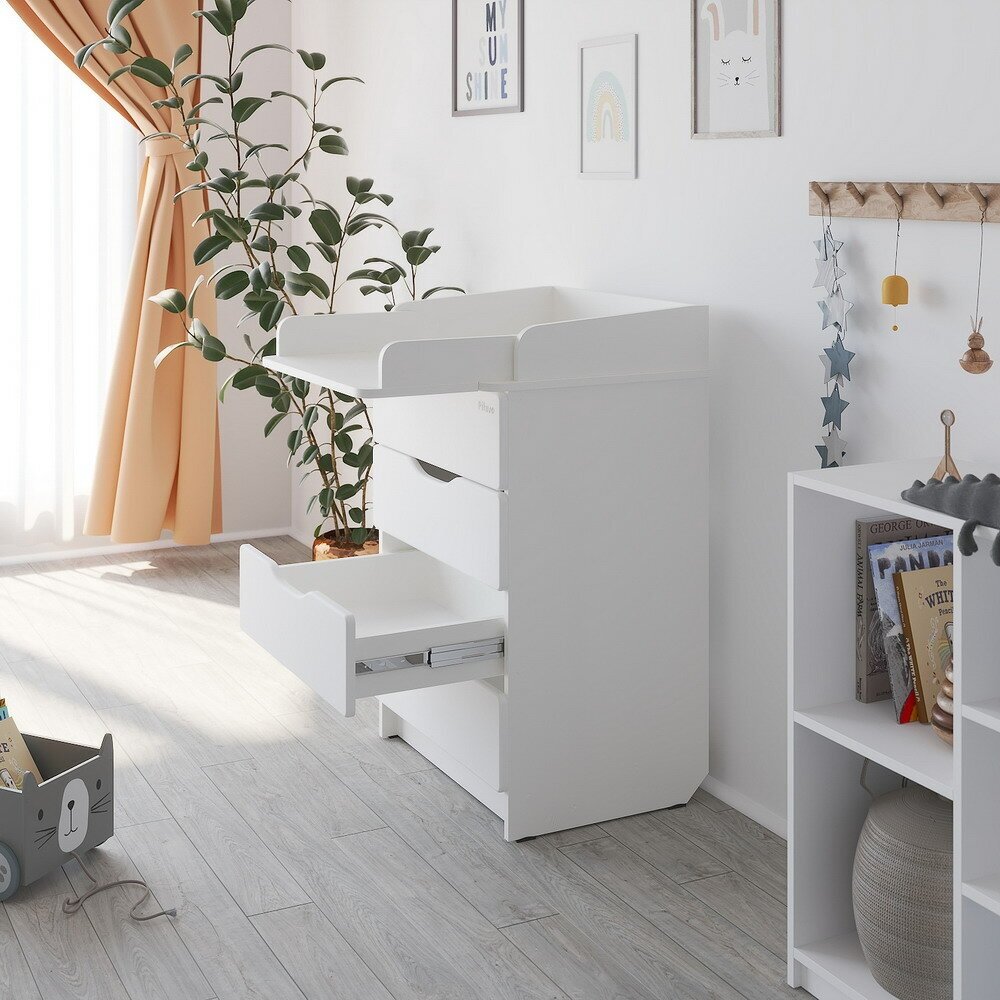 Комод раскладной Pituso Wood/ 804 ПВХ с шариковыми направляющими 4 ящика Белый Аляска