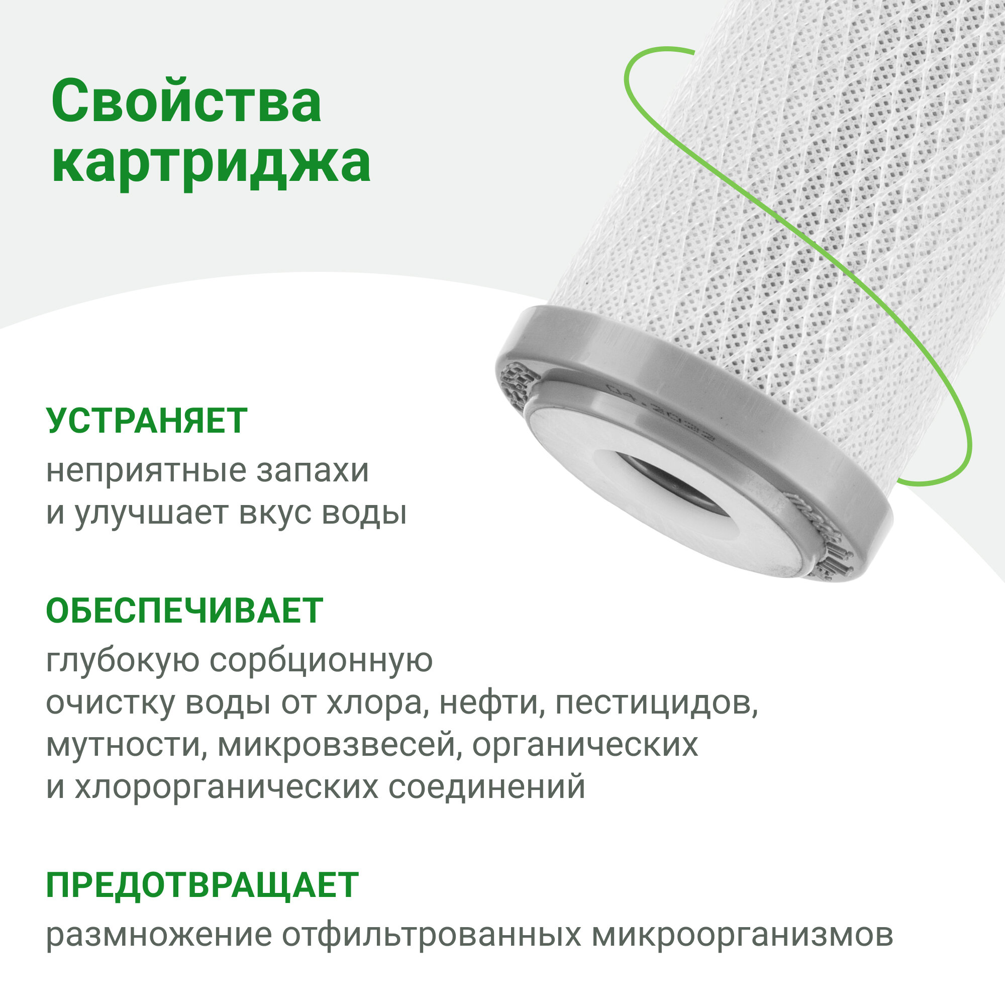 Купить Картридж угольный с серебром Гейзер CBC 0,6 мкм - 10SL Ag Premium, глубокая очистка от хлора, органических и хлорорганических соединений, нефтепродуктов, пестицидов, 27106