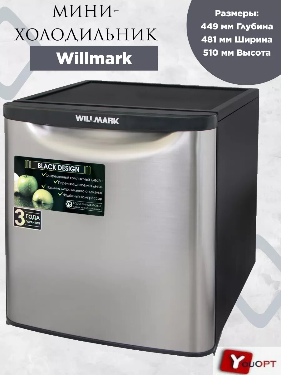 Холодильник WILLMARK XR-50SS (50л, хладагент R600/a , 55,5Вт, мороз. отделение, серебряный цвет)