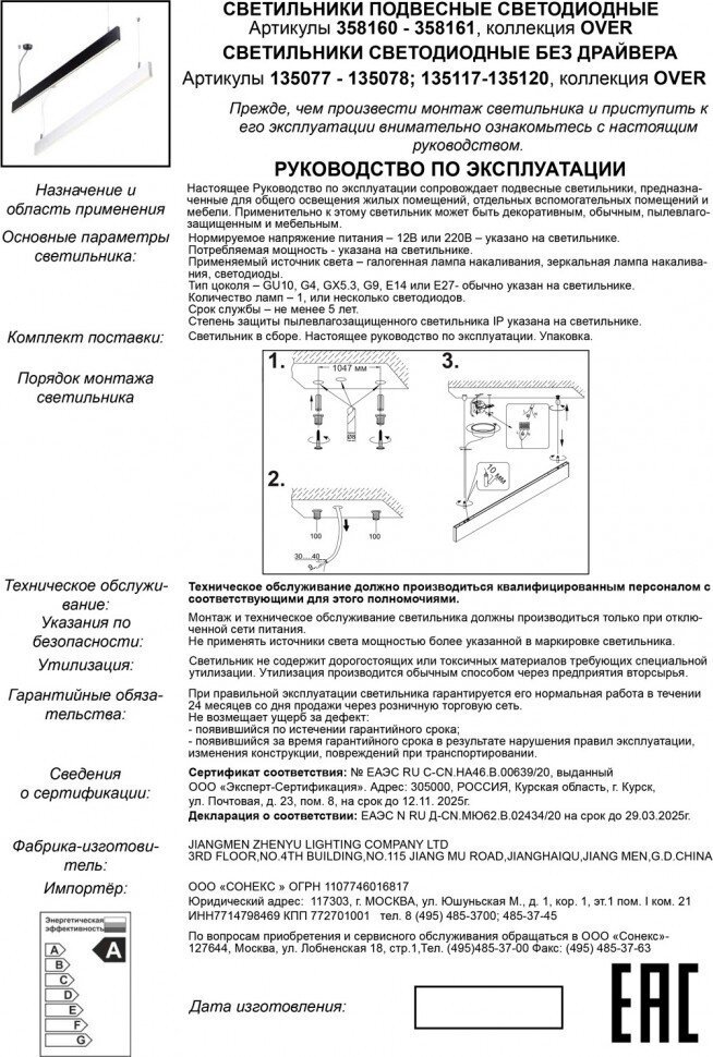 | Направление плафонов | вниз |