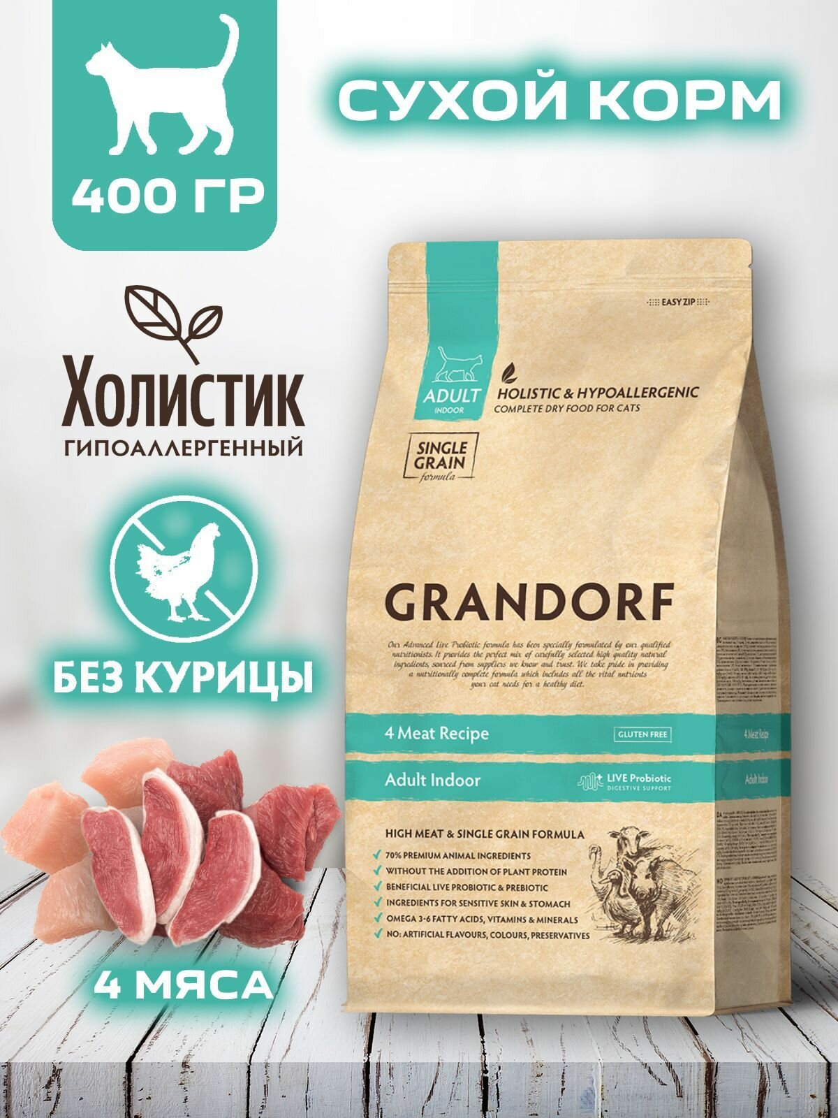 Сухой корм для кошек GRANDORF Lamb and Turkey Adult Indoor ягненок с индейкой и нормальной активностью от 1 года 400 г