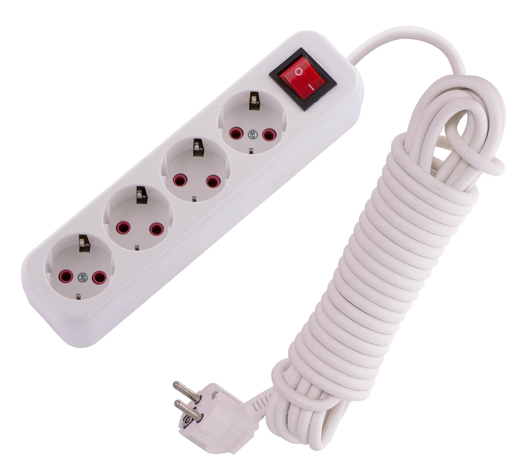 Удлинитель Lezard LILA с заземлением, 4 входа, 7 метров, с выключателем 720-0407-402