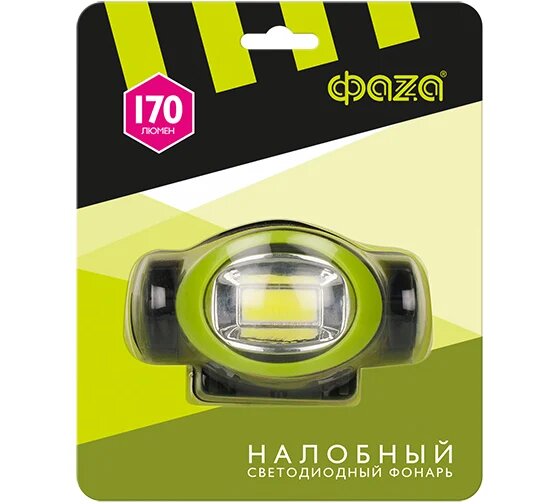 Налобный фонарь ФАZА - H5-L3W-gn, СОВ 170 люмен, 3 режима, 1 шт.