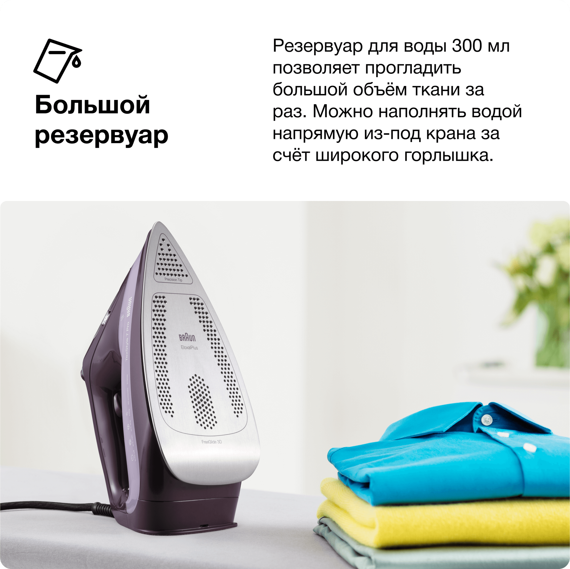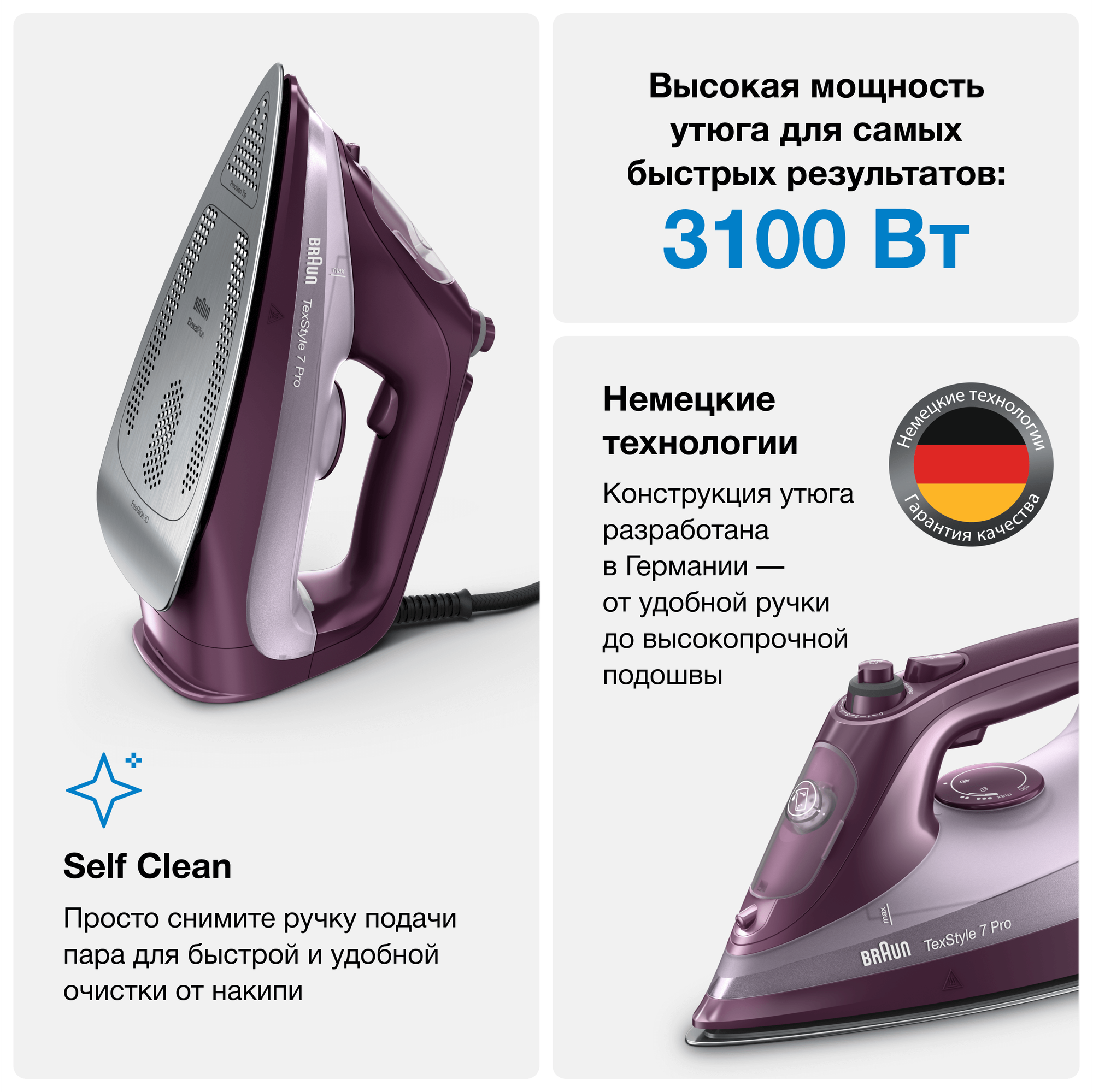 Паровой утюг Braun TexStyle 7 SI7181VI, мощность 3100 Вт, вертикальное отпаривание, паровой удар 225 г/мин