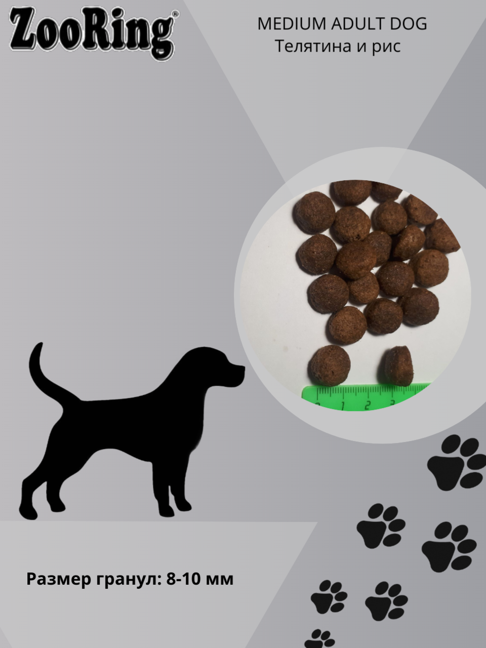 Сухой корм для собак ZooRing телятина, с рисом 10 кг (для средних пород)