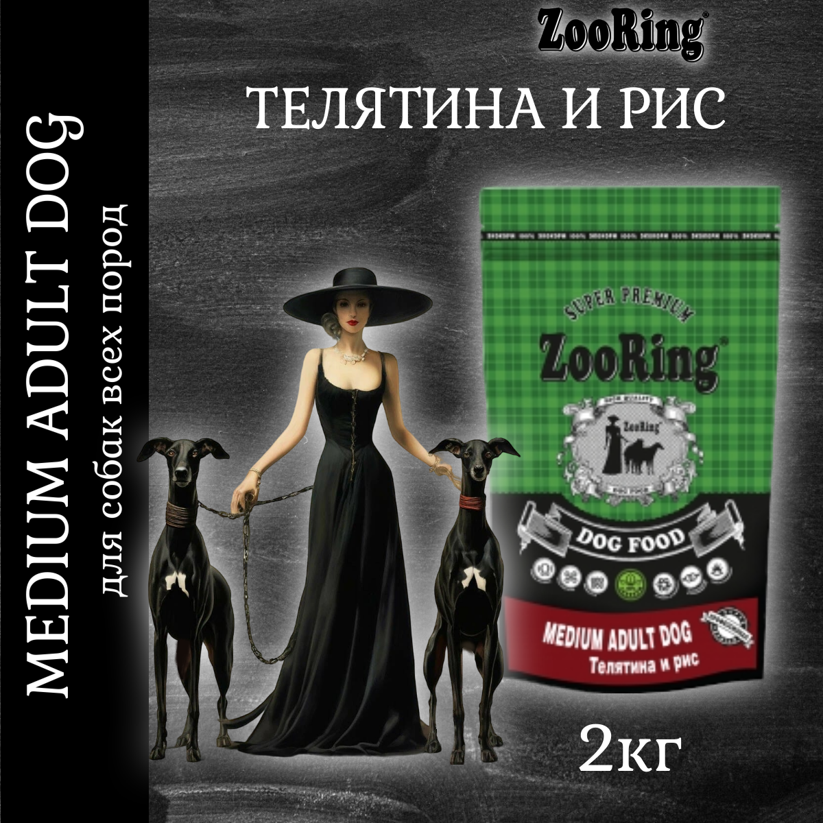 Сухой корм ZooRing MEDIUM ADULT DOG Телятина и рис, для собак 1 шт. х 2 кг