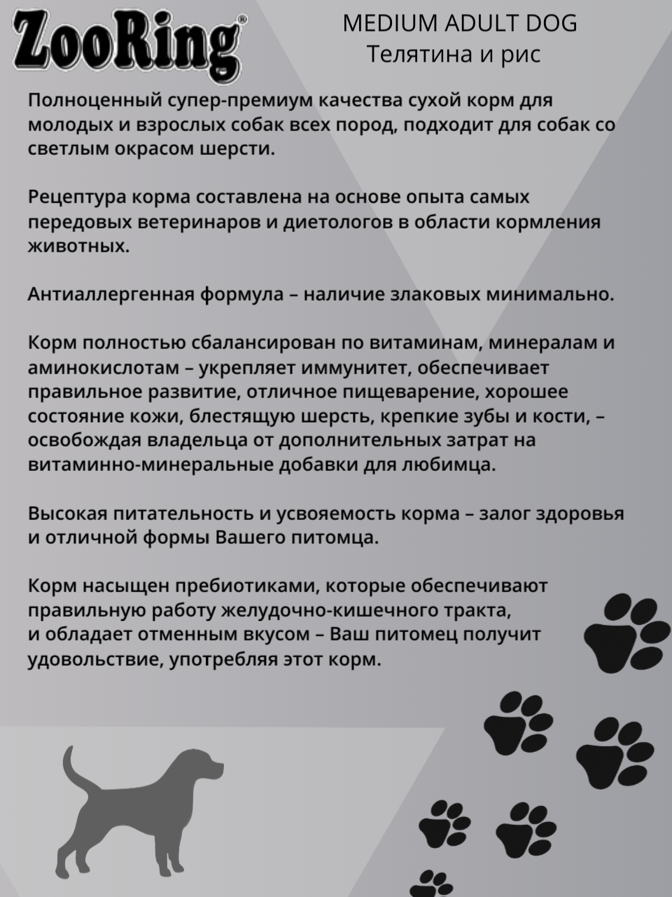 ZooRing Medium Adult Dog Телятина и рис 20кг.