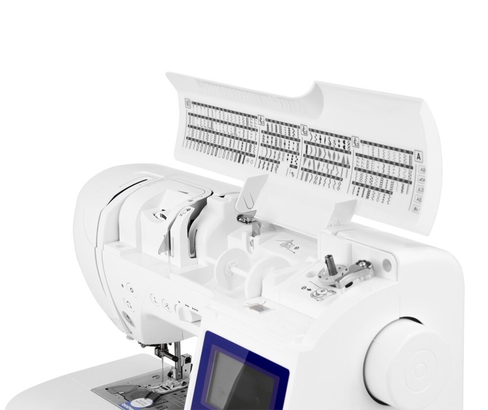 | Особенности | жесткий чехол, работа с грубыми тканями, работа с тонкими тканями, швейный советник |