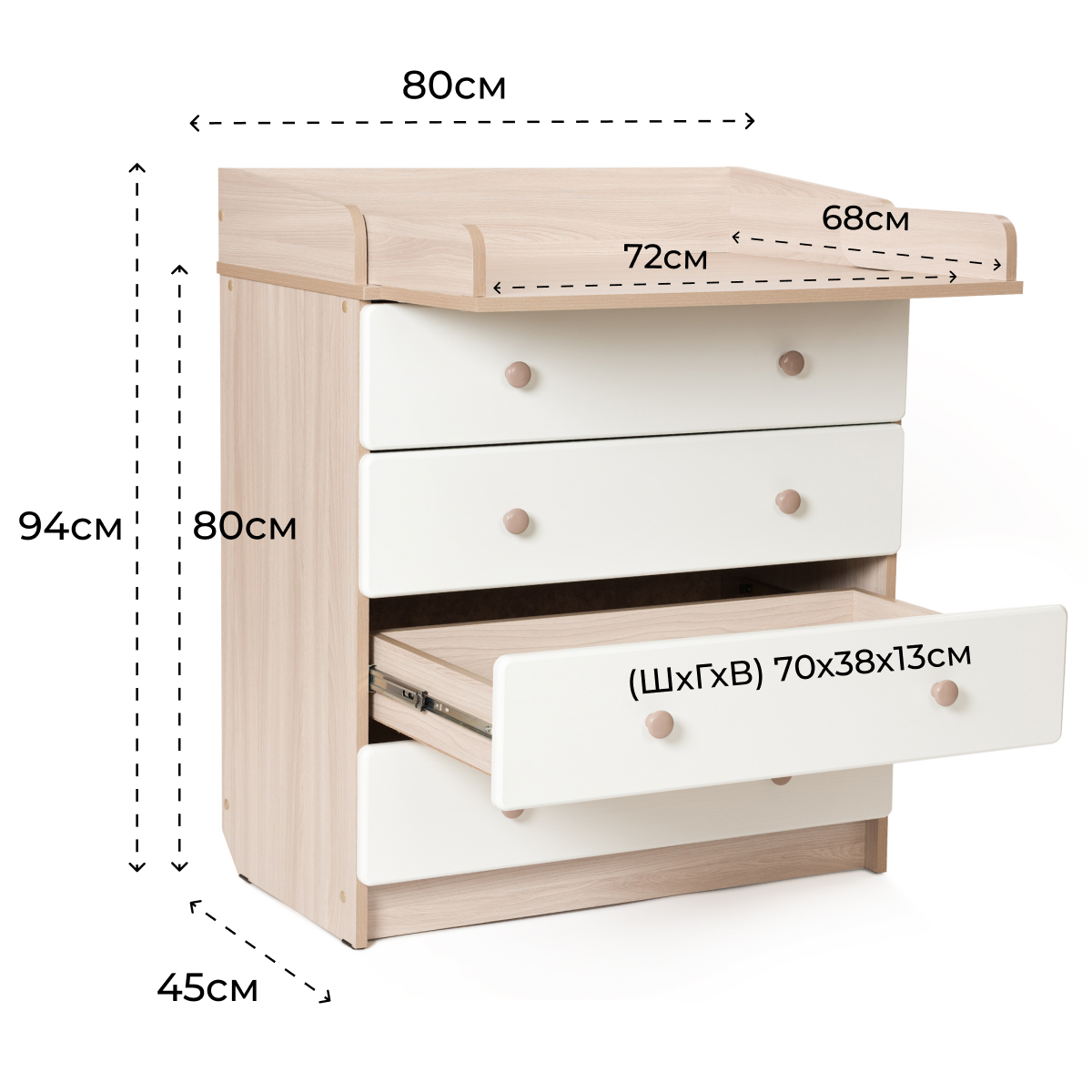 | Размер пеленальной поверхности (ГхШ) | 72х67 см |