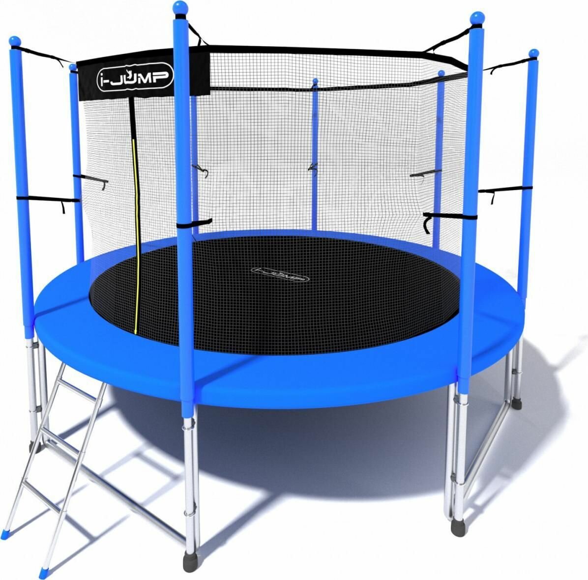 Батут i-JUMP CLASSIC LIGHT 12FT BLUE с защитной сеткой и лестницей для дачи / Батут / батут для взрослых и детей каркасный / батут для дачи с защитной сеткой /