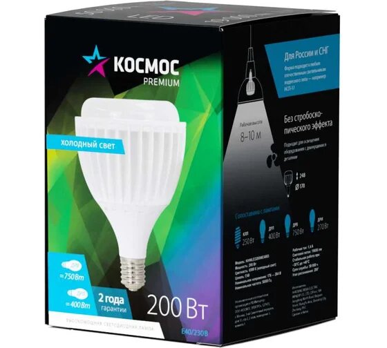 Лампа светодиодная KOSMOS premium HWLED 200Вт 6500К E40 220В космос , KHWLED200WE4065 интересное: