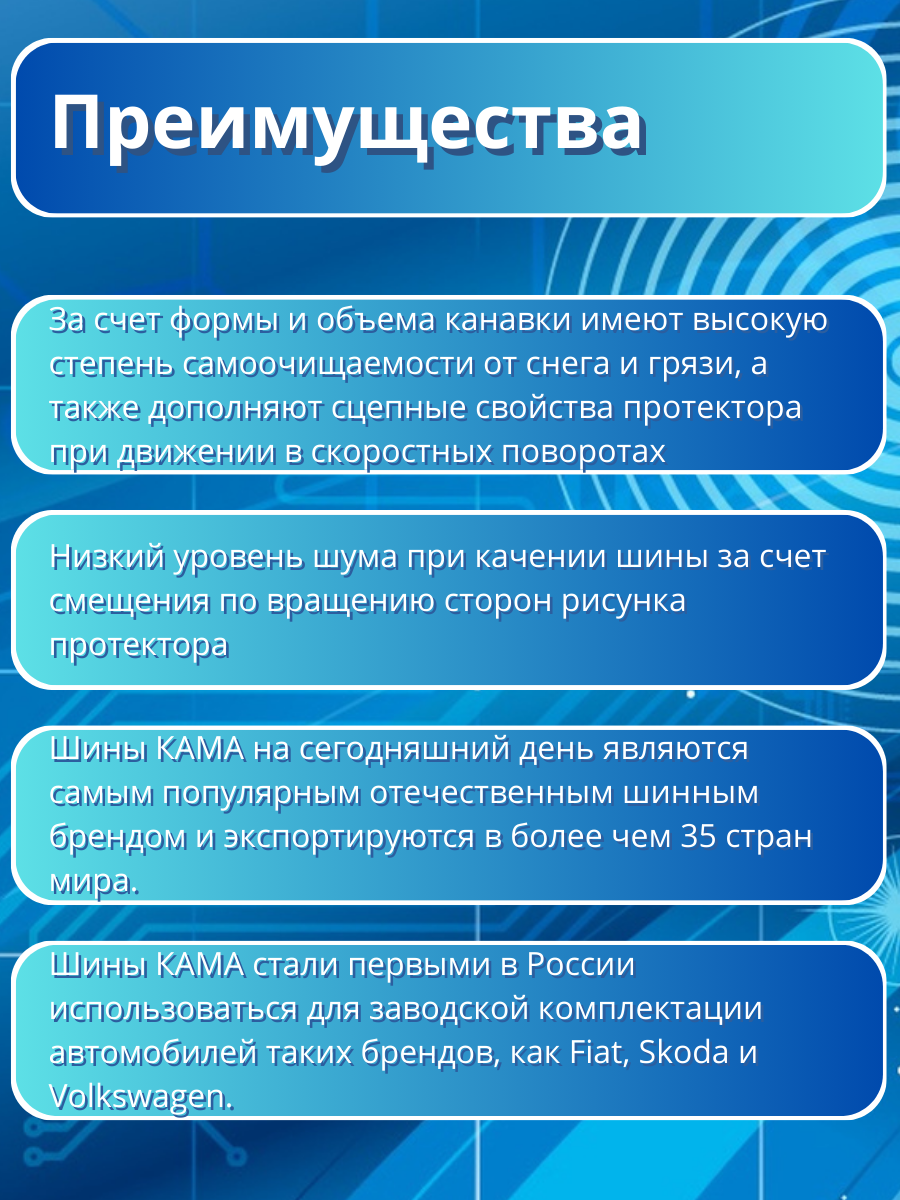 | Отзыв: | Взял после Goodyear Nord Arctic, прошлая импортная резина из Польши была очень проходимая, но достаточно шумная при езде. Кама Альга хотя бы более адаптирована под городское движение в трассе и колею во дворах.