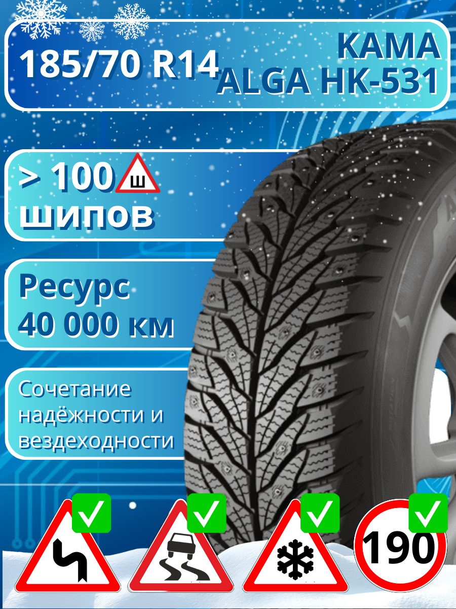 Ниже Вы можете прочитать отзывы на Шина Kama Alga (НК-531) 185/70 R14 зимняя шипованная, ознакомится с подробными характеристиками, посмотреть интересные обзоры и фотографии на Шина Kama Alga (НК-531) 185/70 R14 зимняя шипованная.