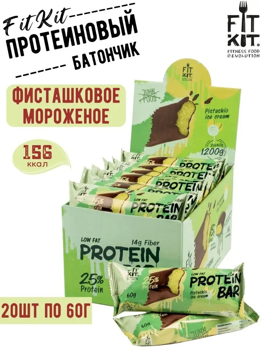 Fit Kit, Protein BAR, упаковка 20шт по 60г (Фисташковое мороженое)