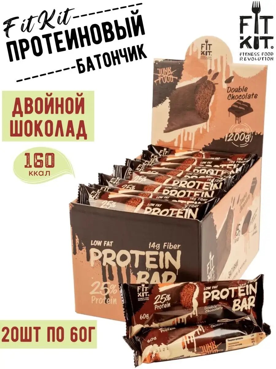 Fit Kit, Protein BAR, упаковка 20шт по 60г (Двойной шоколад)
