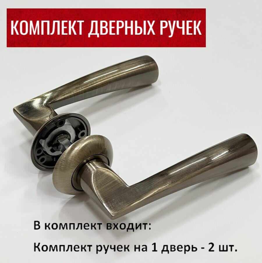 Ручка дверная Rucetti RAP 18 AB античная бронза, ручки для межкомнатных дверей на круглой розетке комплект, фурнитура