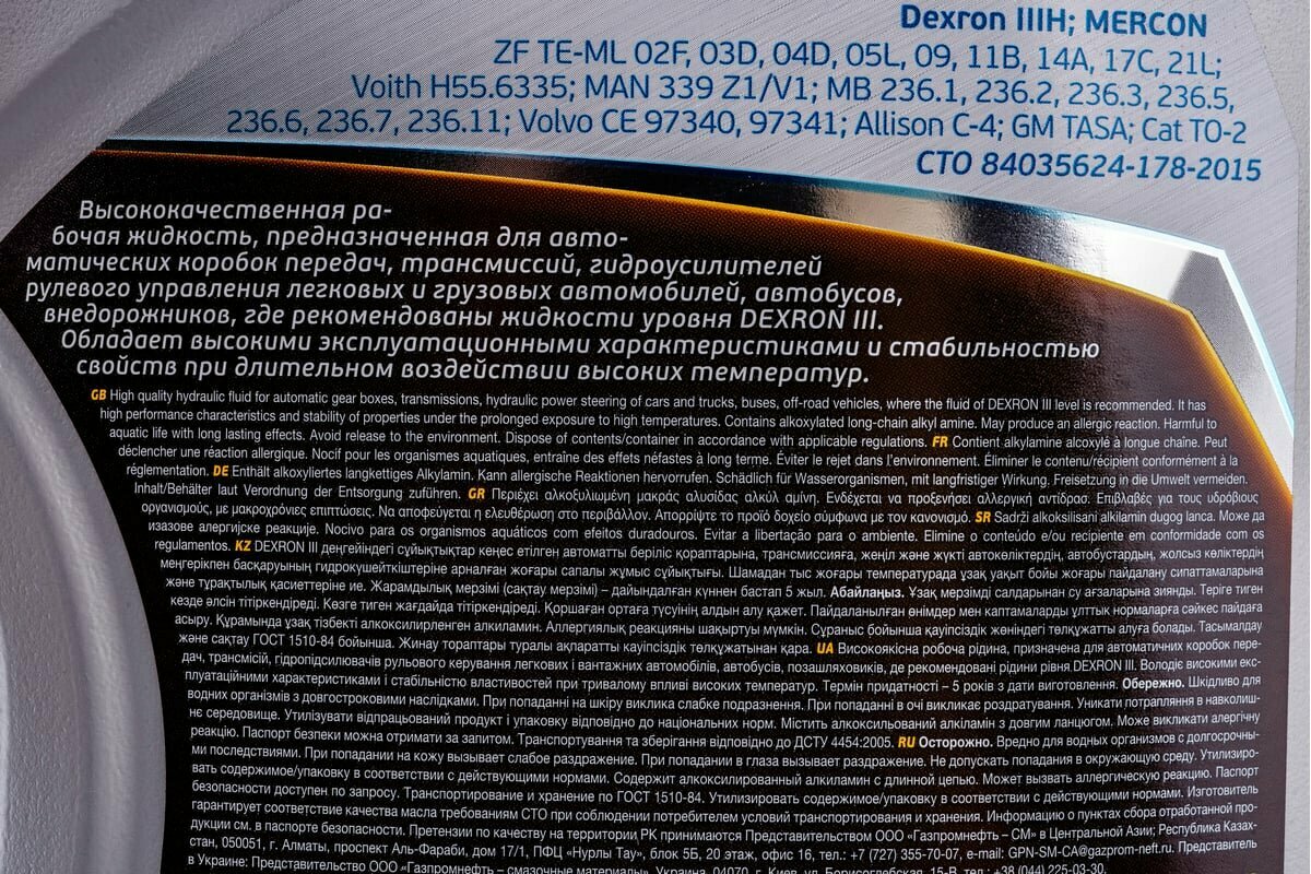 Масло трансмиссионное газпромнефть ATF DX llI 4л 253651855 интересное: