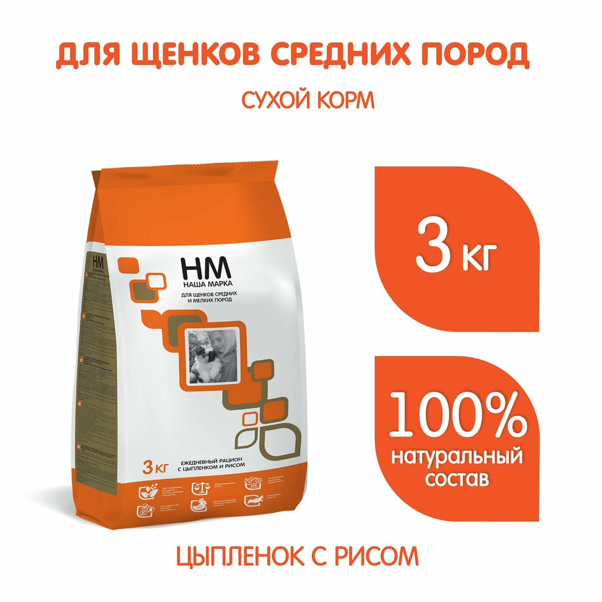Наша Марка 3кг (д/щенков средних и мелких пород) цыпленок+рис сухой д/щенков