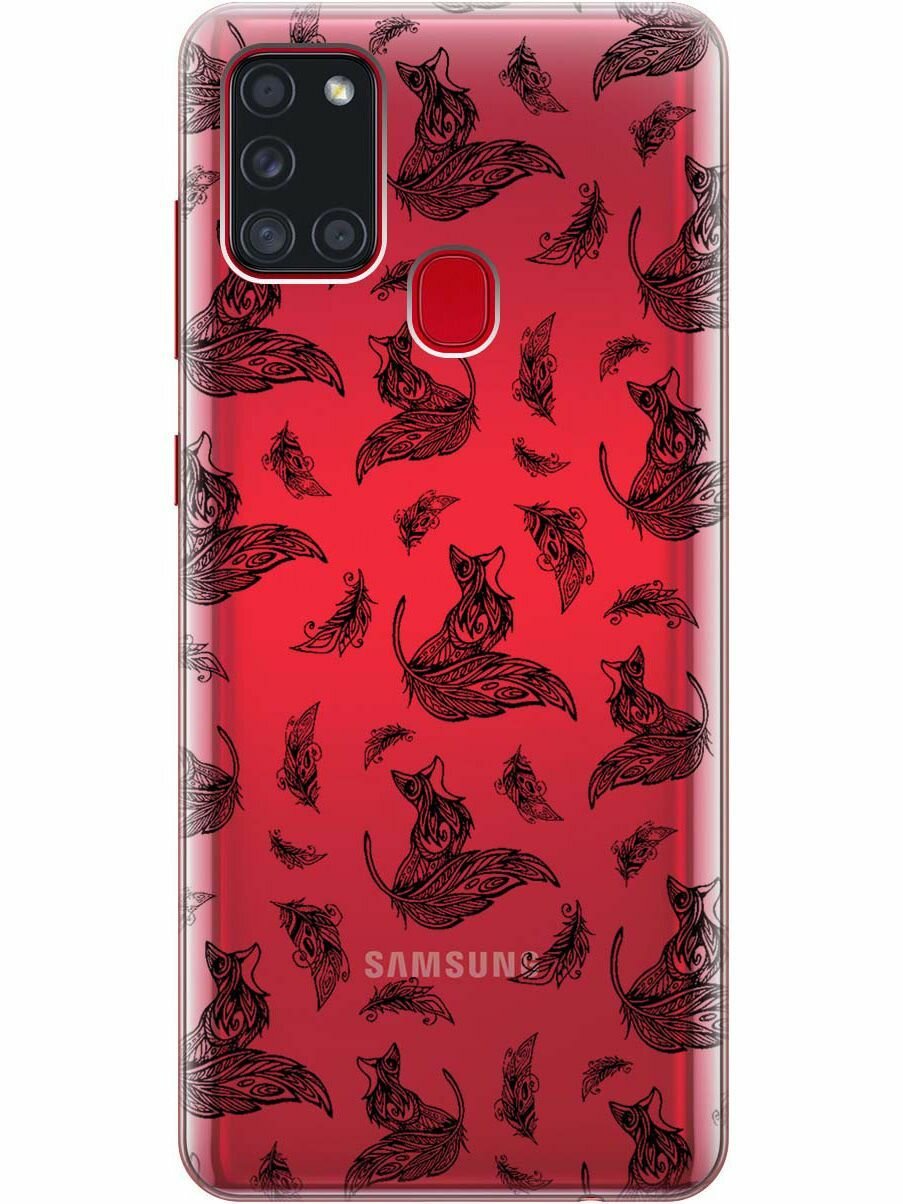 Чехол - накладка Transparent для Samsung Galaxy A21s с 3D принтом "Foxes and feathers" интересное: