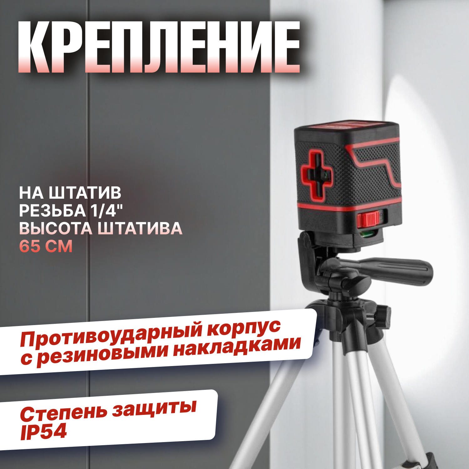 Нивелир лазерный WORTEX LL 0210-1 со штативом в кор. (проекция: крест с фиксацией, до 15 м, +/- 0,4 мм/м, резьба 1/4\, красный луч, штатив 1 м в комп"