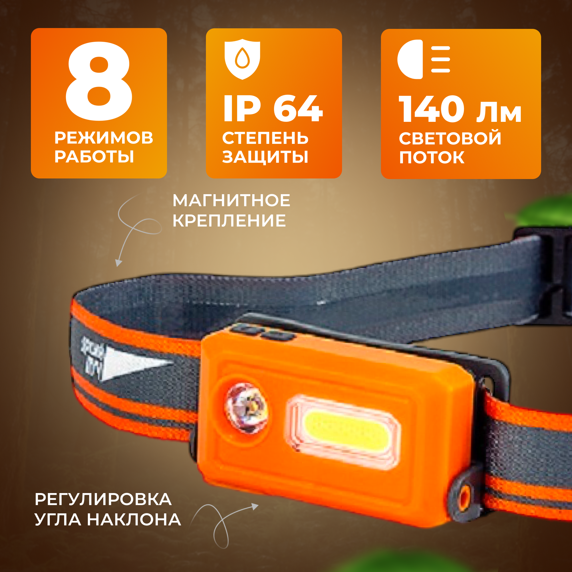 Яркий ЛУЧ Фонарь LH-120 налобный, SMD 120лм 3реж COB 140лм 5реж, диммер, Li-Po 500mAh 4606400106296