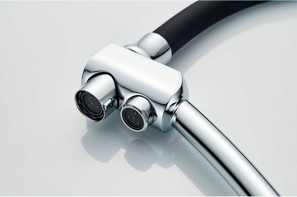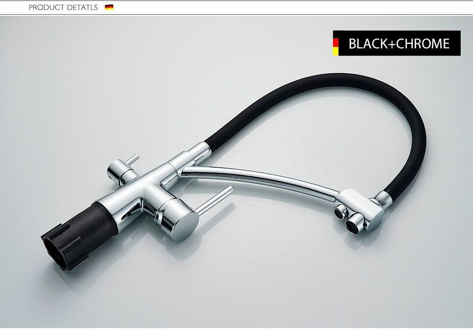 Смеситель кухня силиконовый излив с выходом для питьевой воды A5179F-13 Латунь Черный+Хром Accoona